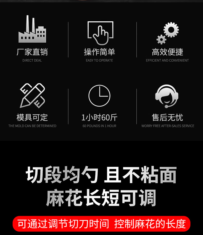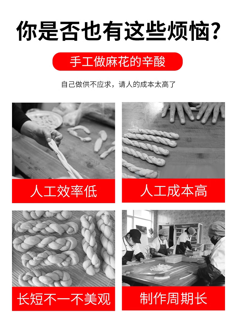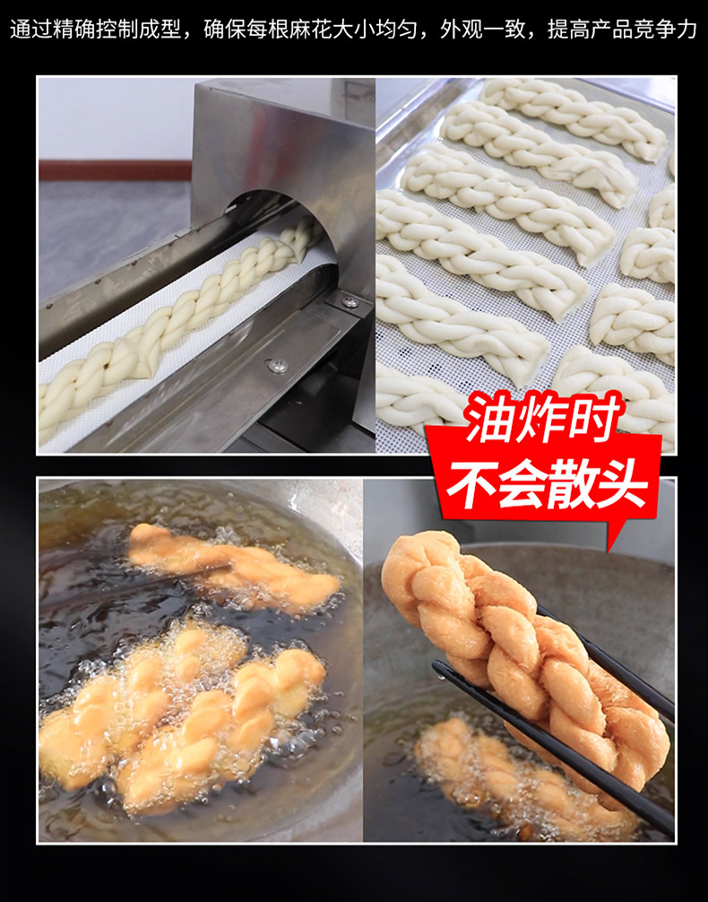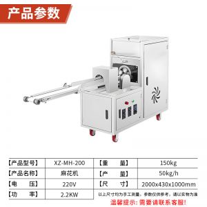 XZ-MH-200麻花機,技術支持、贈送配方、支持定製,1小時加工60斤麻花。切段均勺、且不粘麵,麻花長短可調。可通過調節切刀時間、控製麻花的長度。通過精確控製成型,確保每根麻花大小均勻,外觀一致,提高產品競爭力。